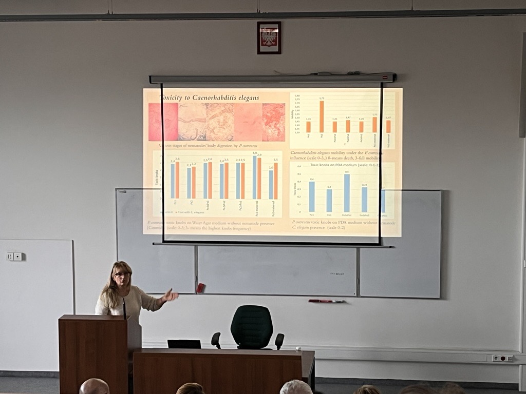 Podczas seminarium Pani Profesor przedstawiła temat „Biologiczna ochrona przed nicieniami fitopatogennymi – praktyczne rozwiązania do zastosowań w polu”, który jest związany z projektem w ramach projektu naukowego finansowanego przez Ministerstwo Rolnictwa i rozwoju wsi: