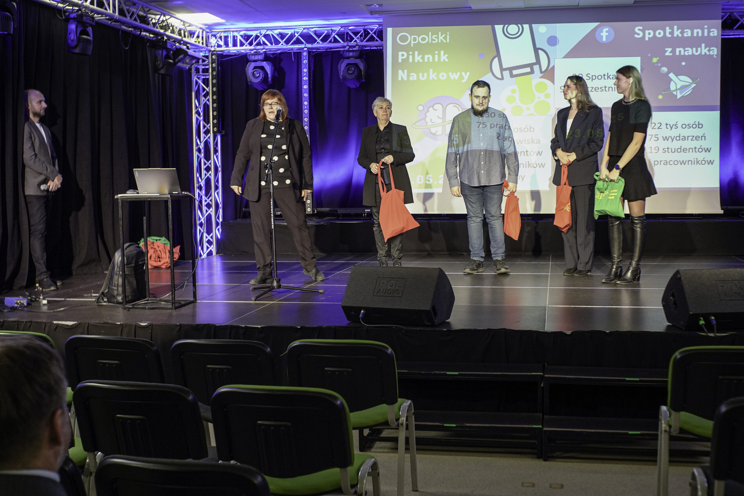 Podczas gali wysłuchaliśmy podsumowań tegorocznych działań obejmujących Noc Nauki oraz Opolski Piknik Naukowy oraz poznaliśmy osoby i zespoły wyróżnione za szczególną aktywność w trakcie festiwalu.